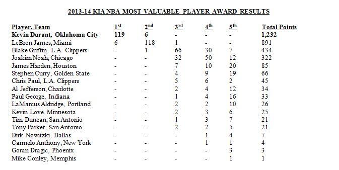 Lo adelantaba la ESPN y este martes se ha hecho oficial. Kevin Durant (Oklahoma City Thunder) ha sido elegido como nuevo MVP de la temporada 2013-14.